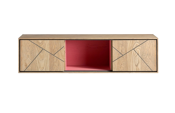 Consola auxiliar colgada fabricada en roble y fresno.