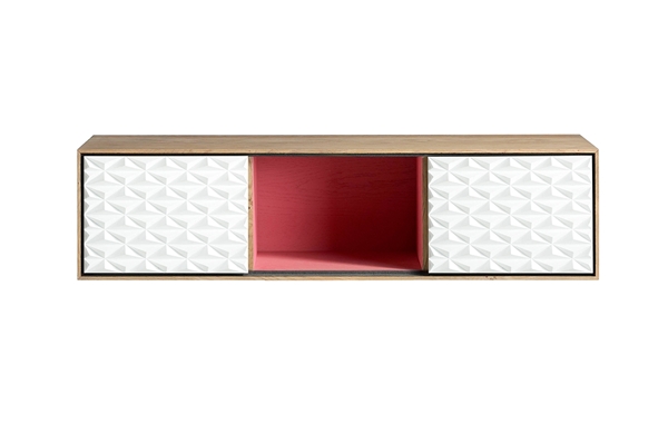> CONSOLA AUXILIAR COLGADA CON HUECO CENTRAL Y PUERTAS PIRAMIDE