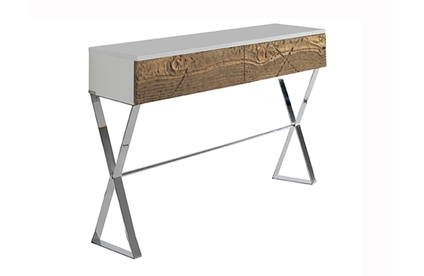 Las patas de la consola están fabricadas en metal cromo y tienen un estilo característico en forma de aspa.