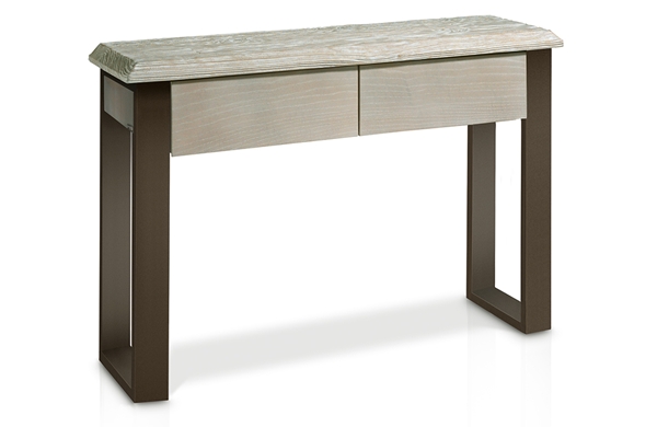 Cónsola fabricada en madera de mobila y los dos cajones en madera de Fresno. Esta cónsola se caracteriza por estar diseñada y fabricada con el perfil tronco.