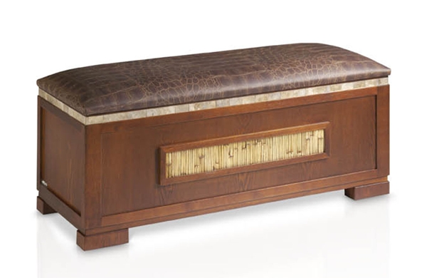 Сундук-банкетка из ясеня с верхней крышкой и инкрустированным перламутром. Высота сиденья: 44 см.