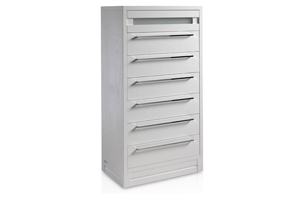 Chiffonier of ash wood with seven drawers. Handles made of Zamak. Ejector guide in first drawer and absorbent drawer guides in the remaining six. Top drawer front with opaque glass. Your monitor may not truly represent actual colour matching. The colours displayed on screen may differ from real colours.