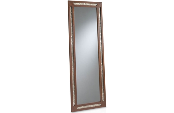 Miroir en pied fabriqué en bois de frêne et déco de nacre incrusté.
