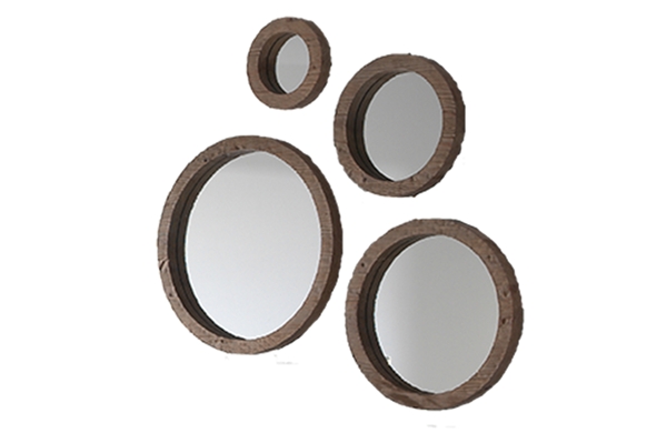 Conjunto de 4 espejos circulares, fabricados en madera de mobila erosionada artesanalmente.