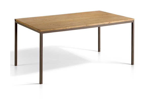 Mesa de comedor Houston fabricada en madera de roble Marinado con posibilidad de fabricarse en madera de fresno, la estructura del armazón es de metal pintado en Óxido marrón.
