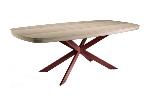 Mesa comedor fabricada en madera de Roble Marinado o Fresno y patas P-33 en metal.