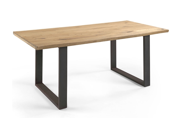 Mesa comedor fabricada en madera de fresno o Roble marinado y patas P-5 en U con metal en óxido marrón.