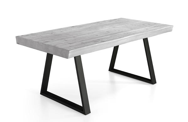 Mesa de comedor fabricada en chapa de roble marinado y patas en metal color Óxido marrón.