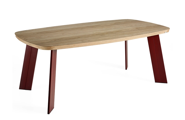 Mesa comedor fabricada en madera de Roble Marinado o Fresno y patas P-10-1(Oblicuas) en metal.