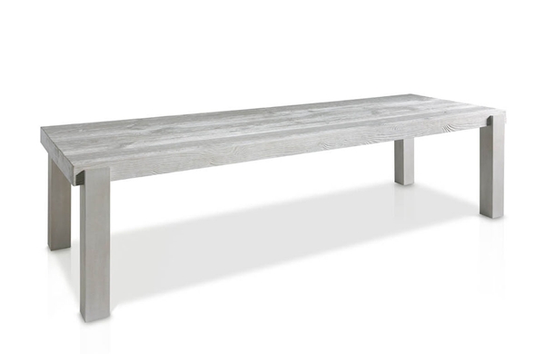 Mesa de comedor con estructura de madera de mobila, con sobre de madera arañada artesanalmente.