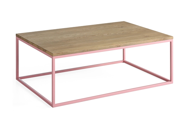 Mesa centro fabricada en madera de roble marinado y estructura metálica.