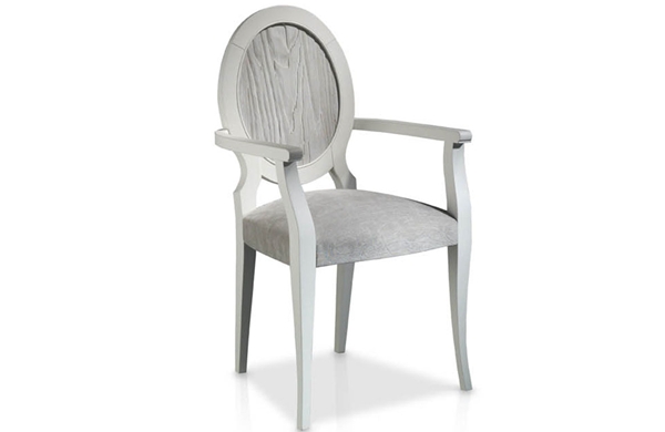 Sillón con estructura de madera de fresno y respaldo medallón en madera de mobila erosionada artesanalmente, con asiento tapizado. Alto asiento : 43 cm